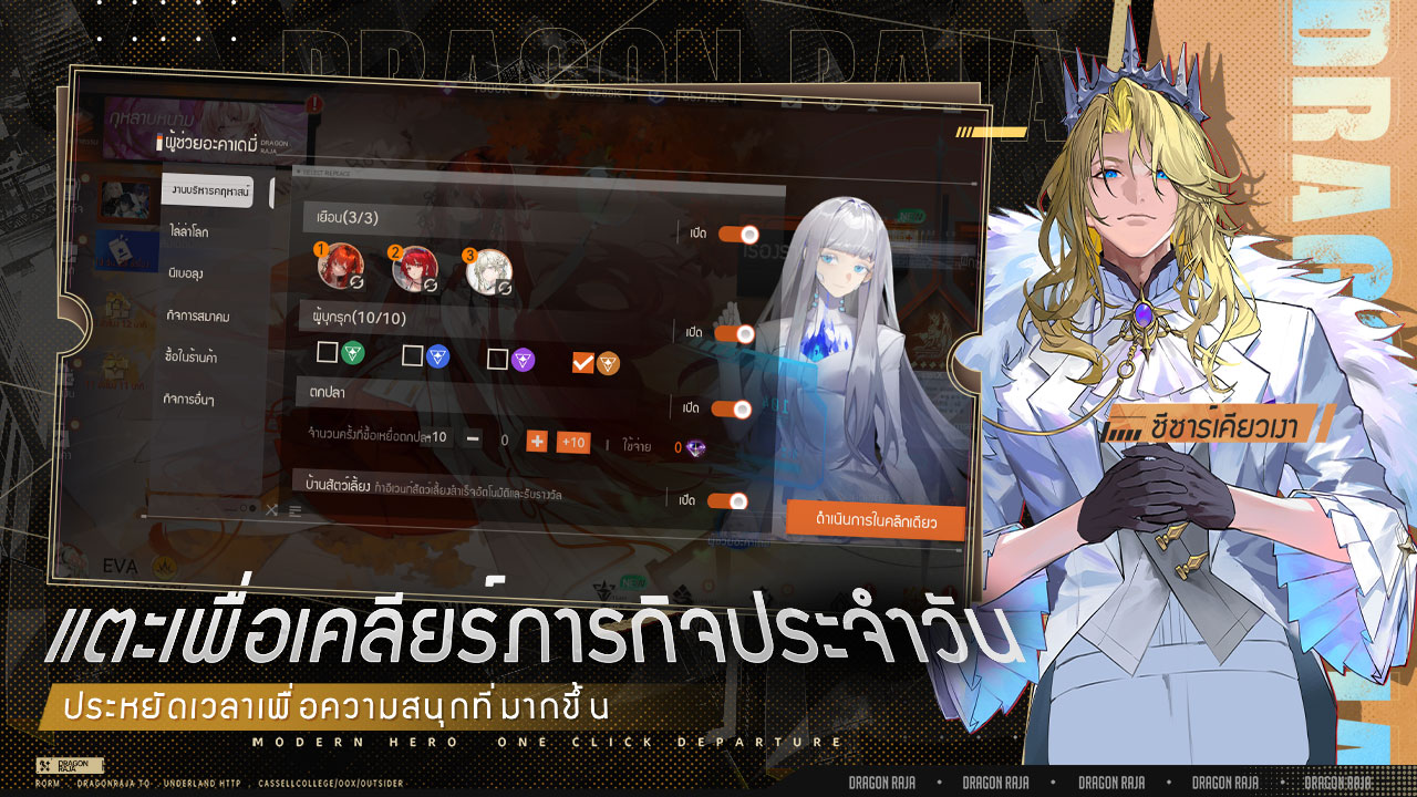 ฟังก์ชัน "ผู้ช่วยเคลียร์ภารกิจประจำวันในคลิกเดียว” สุดพิเศษจะช่วยขจัดความยุ่งยากจากภารกิจประจำวันที่น่าเบื่อหน่าย ปลดปล่อยเวลาของคุณสำหรับสิ่งที่สำคัญอย่างแท้จริง — การผจญภัยเชิงกลยุทธ์ของคุณ!